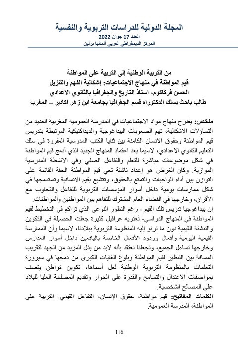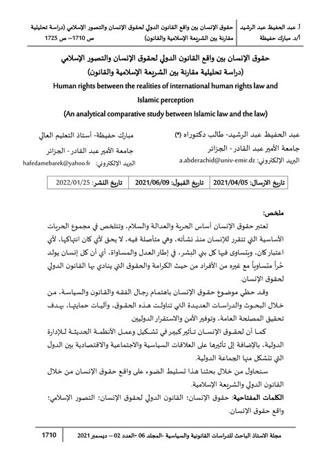 درجة الوعي بحقوق الإنسان لدى طلبة مدارس مرحلة التعليم الأساسي في وكالة الغوث الدولية بمحافظات غزة سنة النشر: 2012 المؤلف: Faraj Abu Shamala المؤلف المؤسسي: Islamic University of Gaza هدف هذا البحث إلى تحديد درجة الوعي بحقوق الإنسان لدى طلبة مدارس مرحلة التعليم الأساسي بمحافظات غزة من وجهة نظر المعلمين، وعلاقته ببعض المتغيرات. أظهر البحث عدة نتائج منها: درجة الوعي بحقوق الإنسان لدى الطلبة مرتفع بمتوسط حسابي ( 2.36 ) من ( 3). وفي ضوء نتائج البحث أوصى الباحث بعدة توصيات منها: ضرورة إعداد وتأهيل وتدريب معلمين متخصصين في حقوق الإنسان، ونشر وتعزيز الوعي بحقوق الإنسان لدى الطلبة.  مسؤولية المدرسة في تنمية الوعي بحقوق الانسان في ضوء التربية الإسلامية سنة النشر: 2017 المؤلف: Asaad Al Hussein المؤلف المؤسسي: Cairo University انطلاقا من أهمية تنمية الوعي بحقوق الانسان وما تهدف اليه من تنمية قيم الحرية والمساواة والتعاون وتعزيز الحقوق والواجبات، فإن هذه الورقة تبحث في مسؤولية المدرسة في تنمية الوعي بحقوق الانسان في ضوء التربية الإسلامية. وتعتبر المدرسة أهم المؤسسات التربوية المنوط بها تعزيز الوعي بحقوق الانسان.  مدى فعالية دور مجلس الأمم المتحدة لحقوق الإنسان في حماية وتعزيز حقوق الانسان (دراسات وأبحاث; Vol.13, No.5) سنة النشر: 2021 المؤلف: Saffo Nardjesse المؤلف المؤسسي: University of Djelfa ظلت قضية حقوق الإنسان الأولى في قائمة هواجس وآمال الإنسانية وأحد الأولويات التي ترتبت على عاتق الأمم المتحدة ضمن برامجها وأهدافها المسطرة والصعبة المنال. فما من ريب من كون أهم أسباب نشأتها إنما تعزى لتلك الانتهاكات الصارخة لحقوق الإنسان لاسيما ما ارتبط منها بارتكاب جرائم حرب وأخرى ضد الإنسانية، وهو ما دفع الدول الكبرى على وجه التحديد إلى التفكير في إنشاء هيئة تُعنى ابتداءً بالمحافظة على السلم والأمن الدوليين وحماية وتعزيز حقوق الإنسان، عبر لجنة حقوق الإنسان بوصفها إحدى اللجان الفرعية التي أنشأها المجلس الاقتصادي والاجتماعي والتي أُوكلت لها مهمة الحفاظ على قدسية هذه الحقوق. غير أنه ما لبث أن ثبت عدم فعاليتها بسبب سيطرة الدول المنتهكة لحقوق الإنسان من جهة وتسييس دورها من جهة أخرى. إذ عالجت اللجنة –خلال سنوات- قضايا حقوق الإنسان بطرق وصفها بعض المعلقين بغير المرضية والأكثر عقما، على إثر ذلك تم إنشاء الهيئة الجديدة باسم "مجلس حقوق الإنسان" بقرار الجمعية العامة رقم 251/60 ، وأعتبر أكبر هيئة دولية أنيط لها مسؤولية تعزيز الاحترام العالمي لحقوق الإنسان والحريات الأساسية للجميع ودون تمييز من أي نوع وبطريقة عادلة ومنصفة. فهل عالجت الآلية الجديدة بتشكيلها المستحدث على نحو كافي نقاط ضعف لجنة حقوق الإنسان؟ وبعبارة أخرى، هل أضاف مجلس حقوق الإنسان منذ إنشائه إلى اليوم قيمة ومساهمة أكبر لحماية وتعزيز حقوق الإنسان ؟ حالة حقوق الإنسان في العالم: أبريل/نيسان 2024 سنة النشر: 2024 المؤلف المؤسسي: Amnesty International Le Rapport d’Amnesty International décrit la situation des droits humains dans le monde en 2023 dans 155 pays différents. Les équipes de journalistes et d’enquêteurs de l'ONG peignent un portrait plutôt sombre, avec notamment un recul du droit des femmes, les conséquences dramatiques du réchauffement climatique sur les populations les plus vulnérables, le recul du droit de manifester, ou encore la prolifération de la haine en ligne dans le monde. La multiplication des conflits armés et le choc du 7 octobre ont également eu des conséquences dramatiques. Cependant, quelques bonnes nouvelles sont aussi à noter, avec des avancées pour les droits des personnes LGBTI par exemple. Amnesty International Report describes the human rights situation worldwide in 2023 in 155 different countries. TheNGO's teams of journalists and investigators paint a rather gloomy picture, with, in particular, a decline in women's rights, the dramatic consequences of global warming on the most vulnerable populations, a decline in the right to protest, and the proliferation of online hate around the world. The multiplication of armed conflicts and the shock of October 7 have also had dramatic consequences. However, there is some good news too, with advances in LGBTI rights for example. حقوق الإنسان بين واقع القانون الدولي لحقوق الإنسان والتصور الإسلامي: دراسة تحليلية مقارنة بين الشريعة الإسلامية والقانون (مجلة الأستاذ الباحث للدرا