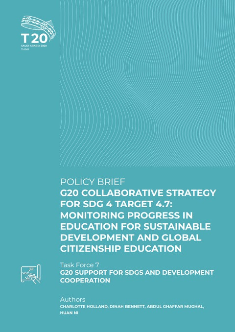 االستراتيجية التعاونية لمجموعة العشرين فيما يخص الهدف 7.4 من النقطة رقم 4 من أهداف التنمية المستدامة: مراقبة التقدم نحو التعليم في مجال التنمية المستدامة والمواطنة العالمية ; موجز السياسة سنة النشر: 2020 المؤلف: Charlotte Holland | Dinah Bennett | Abdul Ghaffar Mughal | Huan NI المؤلف المؤسسي: Think 20 (T20) Saudi Arabia ان جائحة كوفيد-19 تلعب دورا مهما في التذكير بأن هناك حاجة إلى إيجاد حلول عالمية وتضمانية بين الأمم لمعالجة التحديات العالمية. ومن ضمن تلك التحديات المفصلية ضمن أهداف التنمية المستدامة السبعة عشر (17) وفقًا لأجندة 2030 للتنمية المستدامة. ويهدف ملخص السياسة هذا إلى استغلال خبرات وتجارب شراكة مجموعة العشرين من أجل تسريع المراقبة عالية الجودة للهدف 4.7 من النقطة رقم 4 من أهداف التنمية المستدامة. ويقترح إنشاء هياكل تنظيمية تسمح بالمزيد من التتبع الشامل لدمج التعليم التنموي المستدام والمواطنة العالمية ضمن السياسات وتعليم المعلمين والمناهج الدراسية وتقييم المتعلمين بجميع المستويات التعليمية.