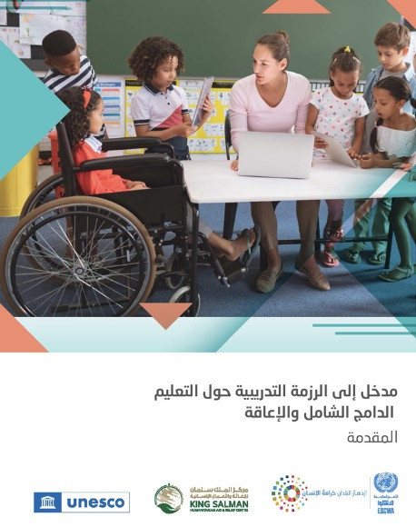 مدخل إلى الرزمة التدريبية حول التعليم الدامج الشامل والإعاقة سنة النشر: 2022 المؤلف المؤسسي: United Nations Economic and Social Commission for Western Asia (ESCWA) أُعدّت هذه الدورة التدريبية حول التعليم الدامج للأطفال وذوي الإعاقة في إطار شراكة بين لجنة الأمم المتّحدة الاقتصاديّة والاجتماعيّة لغربي آسيا (الإسكوا) ومنظّمة الأمم المتحدة للتربية والعلم والثقافة (اليونسكو)، وبدعم من مركز الملك سلمان للإغاثة والأعمال الإنسانية. تتناول الدورة قضايا السياسات التعليمية الشاملة، وتعزيز جودة التعليم، وضمان مشاركة جميع الأطفال في المدرسة، ووضع الطفل المتعلّم في صلب العمليّة التربويّة. وهي تركّز بشكل خاصّ على الأطفال الأكثر عرضة لخطر التسرّب المدرسيّ وعلى المدارس الواقعة في المناطق الأكثر حرماناً. الدورة موجهة إلى العاملين والعاملات في المجال التربوي في المنطقة العربية، في القطاعين الخاص والعام وعلى مختلف الصعد المحلية والوطنية والإقليمية، من معلمين ومعلمات وصانعي وصانعات قرار على مستوى الفصل أو المدرسة أو القطاع التعليمي ككلّ، وإلى الراغبين في تعزيز معرفتهم في مجال التعليم الدامج.