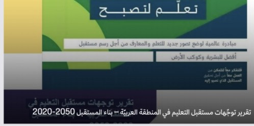 مستقبل التربية والتعليم : تعلّم لتصبح الإنسان الذي تريد - تقرير توجهات مستقبل التعليم في المنطقة العربية – بناء المستقبل 2020 -2050 سنة النشر: 2020 المؤلف المؤسسي: UNESCO Institute for Lifelong Learning (UIL) تقرير يرصد أهم نتائج المشاورات الإقليمية والوطنية في المنطقة العربية، والتي أجرتها الحملة العربية للتعليم للجميع -آكيا وشركائها وأعضائها في الإئتلافات التربوية العربية حول في مستقبل التعليم، وهو يأتي كجزء من مساهمتهم جميعا في مبادرة مستقبل التربية والتعليم العالمية التي أطلقتها اليونيسكو.