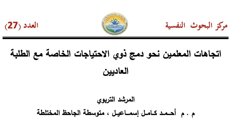 اتجاهات المعلمين نحو دمج ذوي الاحتياجات الخاصة مع الطلبة العاديين (علم النفس ، العدد 27). سنة النشر: 2018 المؤلف: Ahmed Ismail المؤلف المؤسسي: Algeria. Ministry of Higher Education and Scientific Research هدفت الدراسة الى معرفة اتجاهات واراء معلمي المرحلة الابتدائية حول دمج الأطفال ذوي الأحتياجات الخاصة في المدارس الابتدائية في مديرية تربية بغداد ـ الكرخ / 2 حيث تكونت عينة الدراسة من (100) معلما ومعلمة ، وقد استخدمت الدراسة اداة الاستبانة والتي شملت (30) فقرة ، و كانت تدرس الهدف الأول هو اتجاهات المعلمين نحو دمج ذوي الاحتياجات الخاصة في المدارس الاعتيادية وقد توصلت الدراسة الى ان المعلمين كانت لديهم إتجاهات نحو الدمج ، كما أظهرت دلالة الفروق في اتجاهات المعلمين نحو الدمج على وفق متغيري الجنس (ذكور ، إناث ) و سنوات الخدمة (15 سنة فأقل ) و ( 16 سنة فأكثر ) الى وجود فروق تعزى لجنس الأناث في الاتجاه نحو الدمج، كذلك أشارت النتائج إلى وجود فروق تعزى لسنوات الخبرة حيث تبين انه كلما ازدادت سنوات الخبرة زادت عملية التقبل.