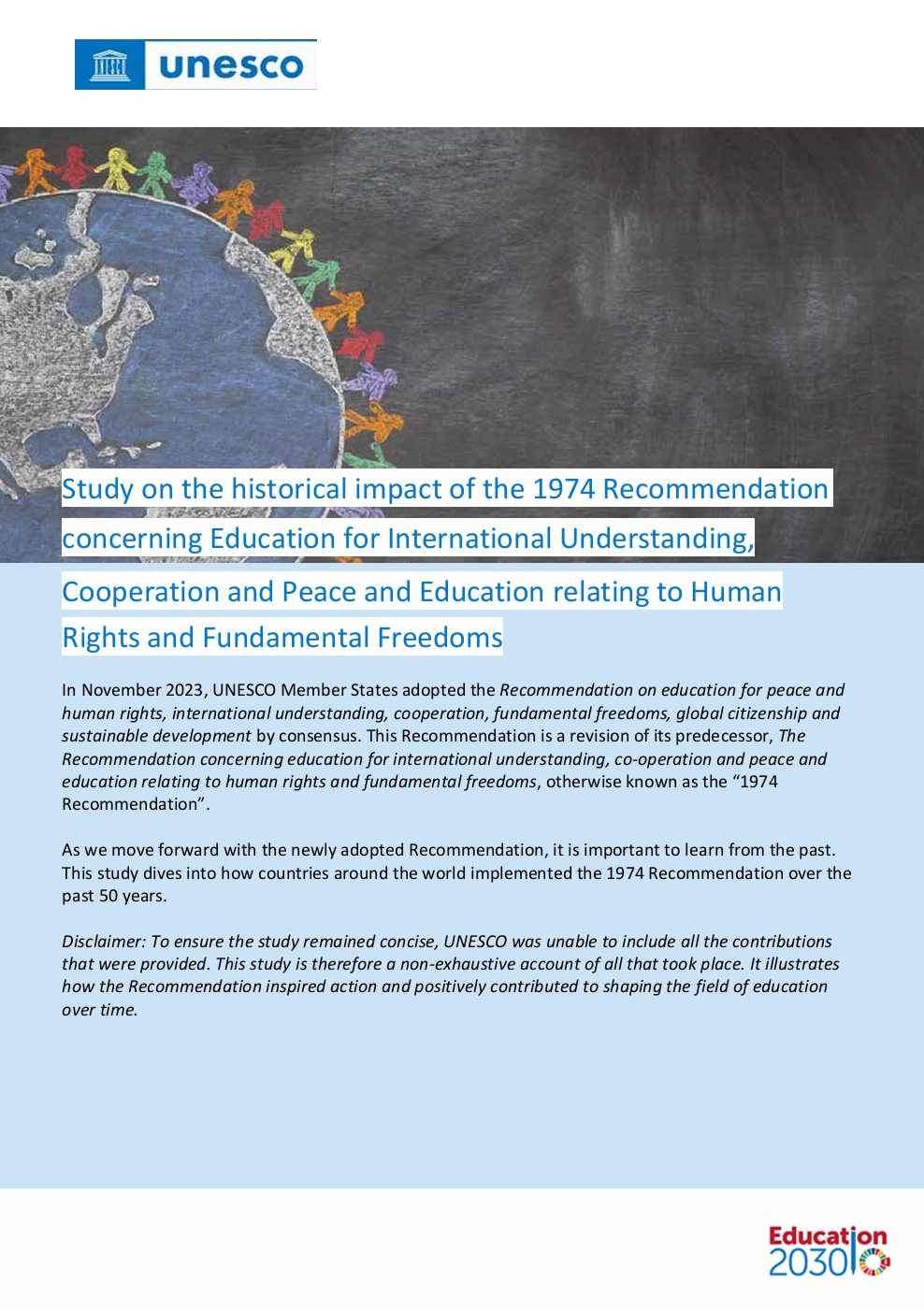 Study on the Historical Impact of the 1974 Recommendation concerning Education for International Understanding, Cooperation and Peace and Education relating to Human Rights and Fundamental Freedoms