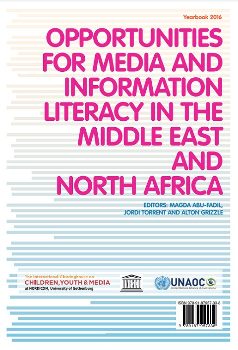 Opportunities for Media and Information Literacy in the Middle East and North Africa: Yearbook 2016 Year of publication: 2016 Author: Magda Abu-Fadil | Jordi Torrent | Alton Grizzle Corporate author: International Clearinghouse on Children, Youth and Media (Sweden) | United Nations Alliance of Civilization (UNAOC) | UNESCO Opportunities for Media and Information Literacy in the Middle East and North Africa is the seventeenth Yearbook published by the Clearinghouse and fills a gap in the existing body of literature about the progress of media and information literacy work in different parts of the world. This book also helps educators in the Middle East and North Africa region looking for opportunities to bring to their classrooms elements of MIL education.
