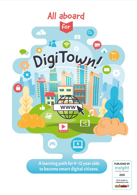 All Aboard for DigiTown: A Learning Path for 9 -12 Year Olds to Become Smart Digital Citizens Year of publication: 2020 Author: Janice Richardson | Veronica Samara Corporate author: Council of Europe | Webwise โAll Aboard for DigiTown!โis a fun, entertaining learning journey for young digital citizens through 10 digital themes centred on โBeing onlineโ, โWell-being onlineโ and โRights onlineโ. These are based on the Council of Europeโs successful Digital Citizenship Education model. As children progress through the stories, exercises and individual and group activities in the book, they will learn about using digital technology wisely, behaving respectfully and responsibly, and cooperating meaningfully online and offline. They end their journey with a backpack of badges to remind them of what being a digital citizen really means. A final section provides solutions, and offers teachers and parents a detailed overview of the competences their children are developing in order to better guide them on their path towards digital citizenship. The book can be used both in class, at home and in distance learning. It is adapted to the learning needs of children in the final years of elementary school (age around 9-12 years).