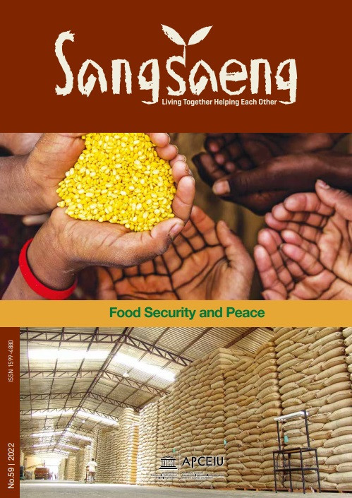 Food Security and Peace (SangSaeng no.59, 2022) Year of publication: 2023 Corporate author: APCEIU The food security issue is vital in pursuing the United Nations’ Sustainable Development Goals, which specifically include a goal of zero hunger. Hunger is both a cause and a result of conflicts. In this perspective, SangSaeng No. 59 focuses on the issue of “food security and peace” in order to examine the impacts of food insecurity and food crises and to explore possible alternatives or solutions to prevent conflicts and secure peace. Contents 03 Editor’s Note 04 Special ColumnRepositioning Youth for Responsible Citizenship / Michael Boakye-Yiadom and Raymond Chegedua Tangonyire, SJ. 08 FOCUS: Food Security and Peace 08 Conflict of Securing Food – ‘Food Insecurity is in Effect Creating an Existential Threat to Human Existence’ / Gavin E L Hall 12 Prioritizing Food Justice – Thinking About Water/Food Nexus for Latin America / Mayari Castillo 16 Feeding the Planet’s Survival – Climate Crisis and Food Security are Paramount Issues for Students to Connect with Nature / Simon Klein 21 Best Practices 21 Archipelagos of Certainty and Inclusion – Identifying Diverse Strategies to Make Learning Effective for Disabled / Eduardo Esteban Perez Leon 25 Adventure Education in Youth Work – Using Rick to Connect People and Nature to Unlearn Unhealthy Behaviours / Tina Trdin 30 InterviewRoad to Peace and Hope in Times of Crisis – Lee Chul Soo’s Works on Peace and Living Beings / APCEIU 36 Story TimeMessage of a Warlus / Marisol Bock 40 Peace in My MemoryPeace at Home / Ivy Joshia 44 Understanding the Asia and the PacificRenaissance of Traditional Archery in Asia / Lee Seunghwan 48 LetterMaking History with the EIU Photo Class Programme / Fanny Amalia Surya Tantular 50 APCEIU in Action