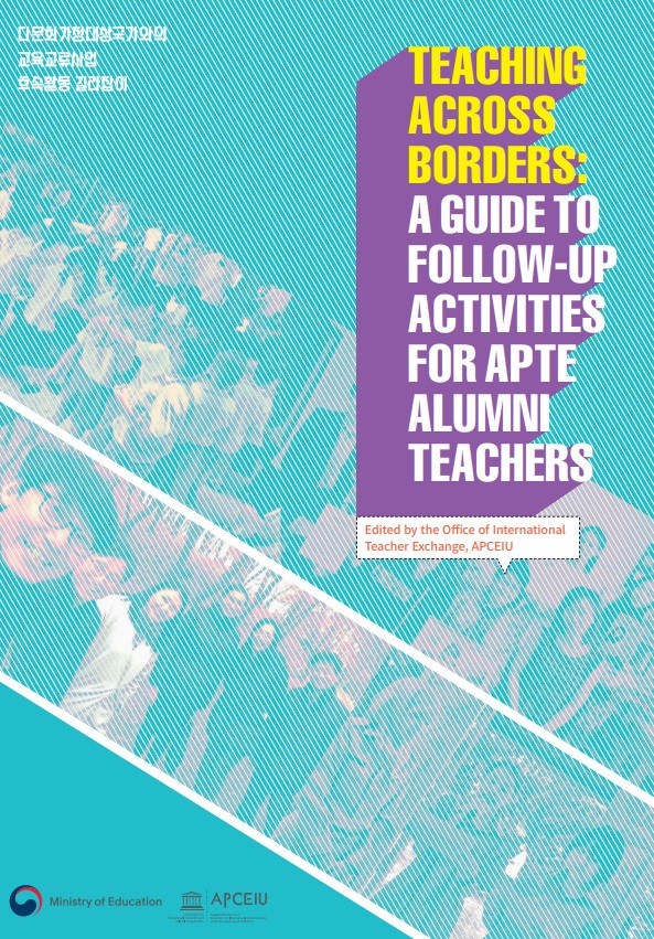 Teaching Across Borders: A Guide to Follow-up Activities for APTE Alumni Teachers Year of publication: 2023 Corporate author: Korea R. Ministry of Education | APCEIU IntroductionLaunched in 2012, the Asia-Pacific Teacher Exchange for Global Education (APTE) marks its 10th anniversary this year with a solid record of steady growth. The Programme started with only two countries— Mongolia and the Philippines—and has since added five more: Cambodia, Indonesia, Lao PDR, Malaysia, and Thailand. Even the COVID-19 pandemic has not impeded the APTE’s development and instead provided the basis for an online form of educational exchange. Over the past decade, more than 2,000 teachers in Korea and the partner countries participated in the APTE and guided numerous students. This was thanks to the unwavering support of teachers who sought dissemination of the value of Global Citizenship Education, a key element of UNESCO’s educational agenda. We express our deepest appreciation to the teachers and students who took part in the APTE. Human ties going beyond national borders are rare and precious. This project has tied many people around the world, with the teachers and students who participated continuing efforts to further consolidate their ties. To assist and facilitate teachers’ efforts toward follow-up activities after participating in the APTE, the Asia-Pacific Centre of Education for International Understanding (APCEIU) under the auspices of UNESCO has released these guidelines on follow-up activities. Encouraging all teachers who are determined to continue Global Citizenship Education in the wider world, we extend our heartfelt gratitude to the writers and researchers for their dedication toward the publication of this book. We sincerely hope that these guidelines promote follow-up activities for international education exchange and its sustainability