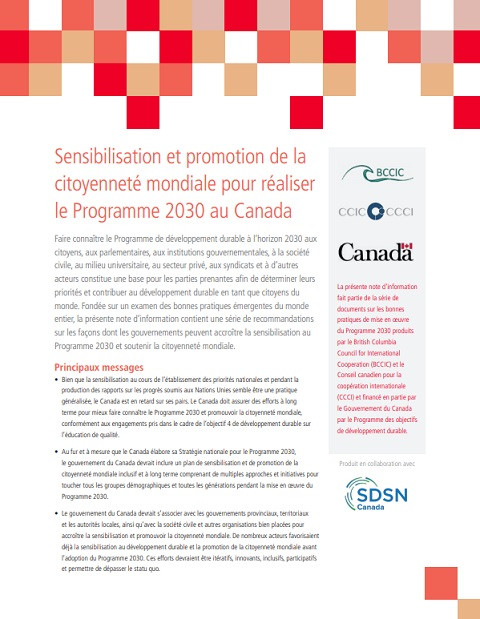 Raising Awareness and Promoting Global Citizenship to Realize the 2030 Agenda Year of publication: 2019 Author: Laurel Wayne-Nixon | Tanya Wragg-Morris | Anjali Mishra | Dawson Markle | Shannon Kindornay Corporate author: British Columbia Council for International Cooperation (BCCIC) | Conseil canadien pour la coopรฉration internationale (CCCI) Socializing the 2030 Agenda for Sustainable Development among citizens, parliamentarians, government institutions, civil society, academia, the private sector, trade unions and others provides a basis for stakeholders to identify their priorities and contribute to sustainable development as global citizens. Based on a review of good practices emerging from around the world, this policy brief offers recommendations on how governments can raise awareness of the 2030 Agenda and support global citizenship.