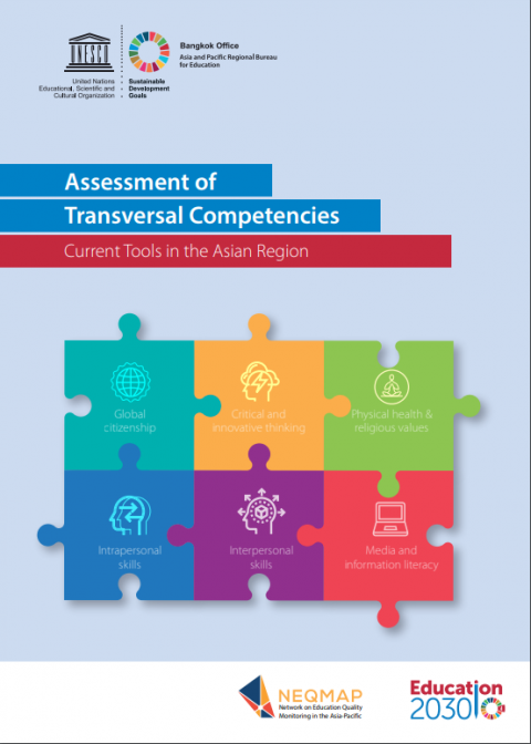 Assessment of Transversal Competencies: Current Tools in the Asian Region Year of publication: 2019 Author: Esther Care | Alvin Vista | Helyn Kim Corporate author: UNESCO Bangkok | Brookings Institution UNESCOโs Asia-Pacific Regional Bureau for Education has been working on education quality under the name of โtransversal competenciesโ (TVC) since 2013. Many of these competencies have been included in national education policy and curricula of countries in the region, but now the importance accorded them is increasingly gaining attention. As policy makers increasingly require their systems to provide evidence of 21st century skills acquired by their learners, implementation challenges highlight the need for a stronger alignment between curricula, pedagogy and learning assessments. UNESCO Bangkokโs Network on Education Quality Monitoring in the Asia Pacific (NEQMAP) undertook this regional study to examine components within countriesโ learning assessments that show how these apply to and can measure transversal competencies. This report provides valuable information on how learning assessments are already capturing TVC and is useful for a broad range of education stakeholders, not only test developers, but also curriculum developers, teacher trainers and teachers. Particularly important is the need to align these skills and competencies across the entire education system.