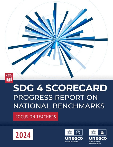 SDG 4 Scorecard: Progress Report on National Benchmarks; Focus on Teachers Year of publication: 2024 Corporate author: UNESCO Institute for Statistic (UIS) | Global Education Monitoring Report Team This is the second assessment of country progress towards the benchmarks, or national targets, that countries have set for eight SDG 4 indicators to mark their contribution to the global targets. The assessment covers the period since 2015 and reviews the probability that each country will achieve its 2025 benchmark or – where such a benchmark was not set – the value they would have achieved if they had progressed at the historic (2000–15) rate of the fastest improving 25% of countries.The 2024 SDG 4 Scorecard finds that progress towards national targets is off track for most indicators. In two cases – the gender gap at the expense of boys in upper secondary education completion and public education expenditure as share of total public expenditure – countries are even moving backwards.In contrast, progress is faster in the eighth benchmark indicator, school internet connectivity, which was added following the priority given to digital transformation at the Transforming Education Summit in 2022. One third of countries set national targets in 2023 and progress on the indicator is being reviewed for the first time in this edition.Progress is also relatively fast in the percentage of teachers with minimum required qualifications, which is also the focus indicator of this edition. New evidence is presented on national policies for minimum required qualification levels to enter the teaching profession, compulsory continuous professional development policies, and teacher training policies on technology in education.