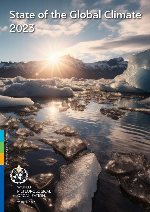 State of the Global Climate 2023 Year of publication: 2024 Corporate author: World Meteorological Organization (WMO) The publication provides a summary on the state of the climate indicators in 2023 with sections on key climate indicators, extreme events and impacts. The indicators include global temperatures, greenhouse gas concentration, ocean heat content, sea level rise, ocean acidification, Arctic and Antarctic sea ice, Greenland ice sheet and glaciers and snow cover, precipitation and stratospheric ozone, with an analysis of major drivers of inter-annual climate variability during the year including the El Niño Southern Oscillation and other ocean and atmospheric indices. The highlighted extreme events include those related to tropical cyclones and wind storms; flooding, drought and extreme heat and cold events. The publication also provides most recent finding on climate related risks and impacts including on food security and population displacement.