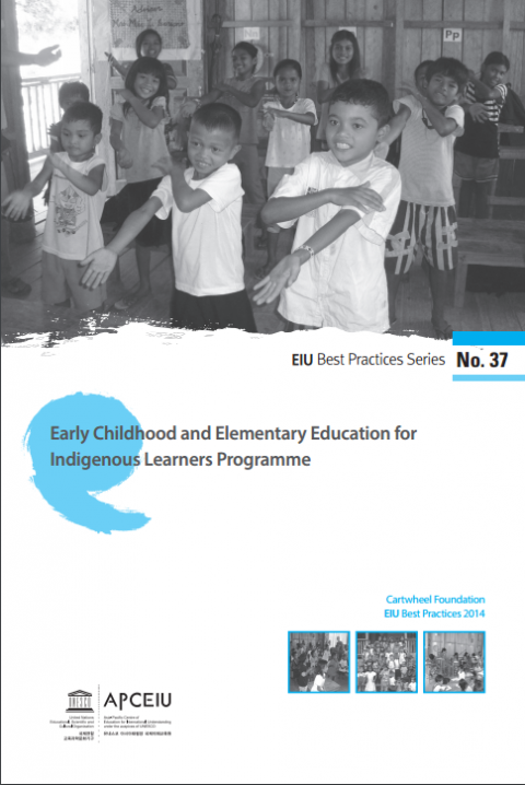 EIU Best Practices Series No. 37: Early Childhood and Elementary Education for Indigenous Learners Programme Year of publication: 2014 Author: Bricks Sabella Sintaon Corporate author: APCEIU This monograph is one of APCEIU's EIU Best Practices Series, which aims to encourage educators, scholars, and activists to implement and share local initiatives on EIU. The Series No.37 introduces the Early Childhood and Elementary Education (ECEE) for Indigenous Learners Programme initiated in the Philippines. The indigenous peoples (IP) reside in the mountainous regions, away from basic social services and struggling with poverty, malnutrition, and lack of proper education. The aim of ECEE is to facilitate access to quality and culturally-relevant early childhood and elementary education for the Higaonon indigenous children. To achieve this, activities such as curriculum indigenization and teacher training are provided in collaboration with the community members. As the program creates learning process for all through openness, sharing, and collaboration, this is an exemplary case of EIU/GCED pedagogical approach.