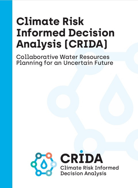 Climate Risk Informed Decision Analysis (CRIDA): Collaborative Water Resources Planning for an Uncertain Future Year of publication: 2024 Corporate author: UNESCO Intergovernmental Hydrological Programme (IHP) | International Center for Integrated Water Resources Management (ICIWaRM) | Alliance for Global Water Adaptation (AGWA) | Deltares The importance of integrating climate change considerations into water resources planning is recognized on a global scale. Various frameworks, such as the Sendai Framework for Disaster Risk Reduction, the United Nations Sustainable Development Goals, and the Paris Agreement, emphasize the need for proper planning, policy-making, and adaptation strategies. The Climate Risk Informed Decision Analysis (CRIDA) methodology was launched in 2018 as a response to these international agendas, bridging the gap between climate change uncertainty and water resource planning.
