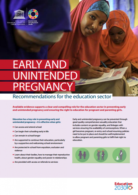 Early and unintended pregnancy: recommendations for the education sector Year of publication: 2017 Corporate author: UNESCO Early and unintended pregnancy (EUP) is a major concern in many countries. It has a major impact on the lives of adolescents – especially girls – in terms of their health, social, economic and education outcomes. This brief contains the summary of recommendations from an evidence review to support the education sector to prevent and respond to EUP.
