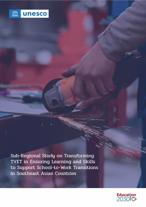 Sub-Regional Study on Transforming TVET in Ensuring Learning and Skills to Support School-to Work Transitions in Southeast Asian Countries Year of publication: 2023 Author: Jann Hidajat Tjakraatmadja | Hary Febriansyah | Yorga Permana | Lala Nurfitria | Farenza Fadil Corporate author: UNESCO Jakarta Technical and Vocational Education and Training (TVET) and the transition from school to work are critical for young individuals to be prepared for entering the job market. The school-to-work transition signifies the transition from education to professional work and involves stages such as finding a job, applying theoretical knowledge and adapting to work expectations. In line with SDG-4, there is a need to improve the relevance of TVET systems, equipping individuals with the necessary skills for employment, entrepreneurship and lifelong learning. Three strategic priorities include promoting lifelong learning opportunities, fostering skills for an inclusive and sustainable economy, and ensuring inclusive and resilient communities. UNESCO supports Member States to address current and future challenges in the field of TVET, including the transition from school to work. Recognising the significant role of TVET in achieving SDG-4, UNESCO works closely with countries like Brunei Darussalam, Indonesia, Malaysia, the Philippines, and Timor-Leste to enhance the relevance and effectiveness of their TVET systems. These countries have demonstrated a strong commitment to improving the quality of education and equipping individuals with the necessary skills for employment, entrepreneurship, and lifelong learning. In the discussion of innovations and trends in TVET systems, there is a need to respond to rapidly changing labour markets through leveraging labour market data, tracer studies, and employer insights, expanding work-based learning to support the transition from school to work, modernising TVET curricula with new skills and competencies, strengthening TVET through private sector and community engagement. TVET is important for the transition from school to work in the sub-region of Southeast Asia, in line with SDG-4. Standardised practices are needed for better employability and mobility. Challenges include labour market mismatches and negative perceptions, but there are opportunities to partner with industry, update curricula, promote inclusivity and gender equality, and adapt to changing labour markets. Using labour market data, expanding work-based learning, and engaging the private sector and local communities are critical. TVET can transform individuals and contribute to sustainable development in the subregion of South-East Asia, creating prosperous and inclusive societies.