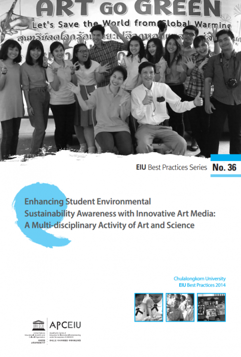 EIU Best Practices Series No. 36: Enhancing Student Environmental Sustainability Awareness with Innovative Art Media: A Multidisciplinary of Art and Science Activities Year of publication: 2014 Author: Poonarat Pichayapaiboon Corporate author: APCEIU This issue is one of APCEIU's EIU Best Practices Series, which aims to encourage educators, scholars, and activists to implement and share local initiatives on EIU. The Series No.36 introduces a multidisciplinary programme of art and science activities implemented in Thailand’s Chulalongkorn University to raise students’ awareness of environmental sustainability. Given the country’s large volume of green mussels, there is increasing concern for shell waste management and global warming. As students of varied age learn how shells can be transformed into pigment and clay, and use to create artwork as part of “Turning Waste into Art to Live a Sustainable Life” project, students come to appreciate the value of environmental protection and management. The programme is an exemplary case in which children are educated to live in harmony with the earth, following one of the key pillars of EIU.