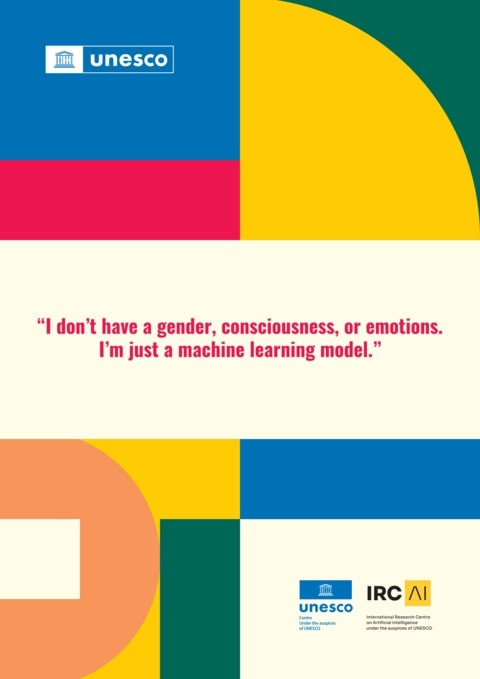 “I Don’t Have a Gender, Consciousness, or Emotions. I’m Just a Machine Learning Model” Year of publication: 2023 Corporate author: UNESCO | International Research Centre on Artificial Intelligence (IRCAI) An introduction to a forthcoming Gender bias in Artificial Intelligence report coming out on March 8, 2024. As we stand on the precipice of a technological revolution driven by Artificial Intelligence (AI), it is imperative to ensure that this future is shaped equitably, representing all genders. With this essay we are excited to announce our forthcoming in-depth report on Gender and Artificial Intelligence in a partnership between IRCAI and UNESCO, set for release on March 8, 2024. As we prepare for this milestone event, we extend an invitation to experts, scholars, and all interested stakeholders to join us in our research.