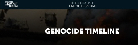 Genocide Timeline Year of publication: 2024 Corporate author: United States Holocaust Memorial Museum (USHMM) This timeline proposed by the United States Holocaust Memorial Museum shows the major conceptual and legal advances in the evolution of the term "genocide" . It does not seek to detail every case that could be considered genocide, but to show how the term has entered the political, legal and ethical vocabulary from 1900 to 2016 to express threats of violence against groups.