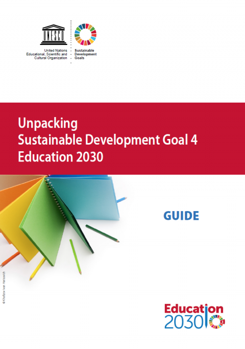 Unpacking Sustainable Development Goal 4 Education 2030: Guide Year of publication: 2017 Corporate author: UNESCO This guide, organized around a set of questions and answers to “unpack” SDG4, provides overall guidance for a deeper understanding of SDG4 within the 2030 Agenda for Sustainable Development, in order to support its effective implementation. The guide outlines the key features of SDG4-Education 2030 and the global commitments expressed in the SDG4 targets as articulated in the Incheon Declaration and the Education 2030 Framework for Action. The guide also examines the implications of translating these global commitments within, and through, national education development efforts. This guide supplements the UNESCO technical guidelines (2016) for Mainstreaming SDG4-Education 2030 into sector-wide policy and planning. It was developed by Sobhi Tawil, Margarete Sachs-Israel, Huong Le Thu, and Matthias Eck of the UNESCO Section of Partnerships, Cooperation and Research (PCR) within the Division for Education 2030 Support and Coordination.