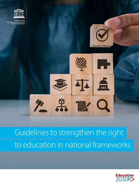 Guidelines to Strengthen the Right to Education in National Frameworks Year of publication: 2021 Corporate author: UNESCO These Guidelines aim to strengthen national frameworks by assisting countries and stakeholders in conducting an assessment of the compatibility of their national education legal and policy framework with international standard-setting instruments on the right to education, and in light of SDG 4 commitments. These Guidelines provide a hands-on approach aiming to assist in the review of national education legal and policy frameworks in view of: Developing practical knowledge on the right to education based on the Right to education handbook and supporting capacity development Providing operational tools to assess the status of the right to education at country level and its compatibility with international and regional human rights obligations and international commitments (notably SDG 4) Identifying legal and policy gaps in education at country level and resulting challenges Making recommendations for the full alignment of national constitutions, legislation , singular and policies with international standards and provisions Providing insights on how to implement the recommendations in view of necessary reforms.