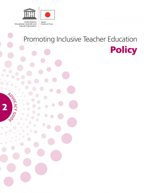 Promoting inclusive teacher education: policy Year of publication: 2013 Author: Ian Kaplan | Ingrid Lewis Corporate author: UNESCO Bangkok ‘Promoting Inclusive Teacher Education’ is a series of five advocacy guides. The guides discuss challenges and barriers to inclusive education in different areas of teacher education and offer related strategies and solutions for effective advocacy towards more inclusive practices. The series begins with this introductory guide. It provides an overview of inclusive teacher education and of what advocacy means in this context. It also provides an introduction to the topics covered in the four other guides in the series. These are ‘Policy’, ‘Curriculum’, ‘Materials’, and ‘Methodology’.Advocacy Guide 2: Policy – raising awareness of existing policies for inclusive education and changing/adapting policies at different levels in the education system (e.g. at the ministry, teacher education institution and school levels). Policy refers mainly to the guiding rules, laws and principles of education at the national level and within teacher education institutions. Policy guides the practices of individuals, groups and institutions on various inclusive education issues.