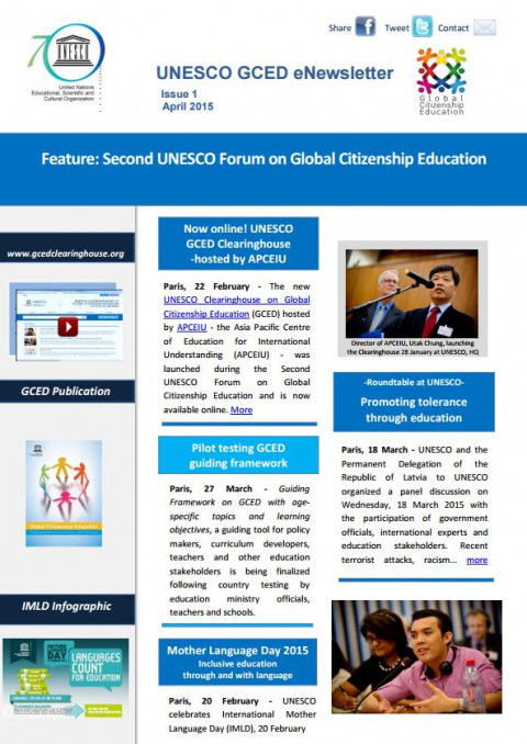 Eliminating world challenges through global citizenship education (SangSaeng no. 37 summer autumn 2013) Year of publication: 2013 Author: Kaisa Savolainen Corporate author: APCEIU SangSaeng No. 37- How to Foster Global Citizenship? has been published. In order to help our readers better grasp the concept of global citizenship and provide useful information and new ideas, this issue deals with various aspects of global citizenship education.3 Director’s Message4 Special ColumnBuilding True Citizens for a Single Humanity8 Focus: How to Foster Global Citizenship?8 Eliminating World Challenges through Global Citizenship Education 13 Developing Global Citizens with a Global Perspective18 Living in a New World Starts with Education23 GCE in Every Corners of the World28 Best Practices28 Hands-on Hand Print for Environmental Sustainability32 Bhutan Teachers Learn New Models of Education35 Comic Relief: Song of the City36 Special ReportPaving the Way Together for Global Citizenship Education40 InterviewBuilding a Global Community out of the Ashes of Poverty42 LetterCapturing Moments of Living in Harmony44 Peace in My MemoryHow Golf Speaks about Peace47 Understanding the Asia-Pacific RegionDiscovering Locks beyond the Function of Opening and Closing50 APCEIU in Action