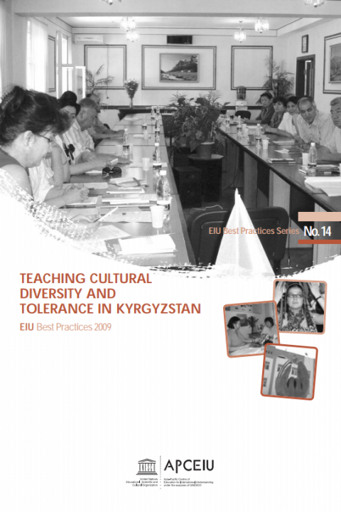 EIU Best Practices Series No. 14: Teaching Cultural Diversity and Tolerance in Kyrgyzstan Year of publication: 2009 Author: Erkeayim Jorobekavo | Almakan Naizabekova Corporate author: APCEIU This report is one of APCEIU's EIU Best Practices Series, which aims to encourage educators, scholars, and activists to implement and share local initiatives on EIU. The Series No.14 introduces ‘Culturology,’ a mandatory course instituted in Kyrgyz-Uzbek University, designed and implemented to teach cultural diversity and tolerance to students. Given the nation’s recent history of independence and racial and religious diversity, the University chose to develop the course program and methodology guidebook to foster understanding of international education and multiculturalism.