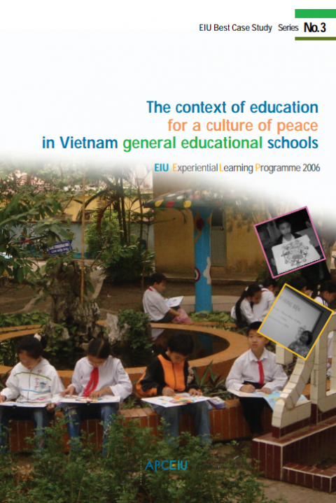 EIU Best Practices Series No. 3: The Context of Education for a Culture of Peace in Vietnam General Education Schools Year of publication: 2006 Corporate author: APCEIU This monograph is one of APCEIU's EIU Best Practices Series, which aims to encourage educators, scholars, and activists to implement and share local initiatives on EIU. The Series No.3 introduces a research study conducted to examine Vietnam’ general educational schools for culture of peace education. Upon assessment of interviews and surveys undertaken by educators and students from five schools, the result indicated that education for culture of peace was practiced through both academics and extracurricular activities.
