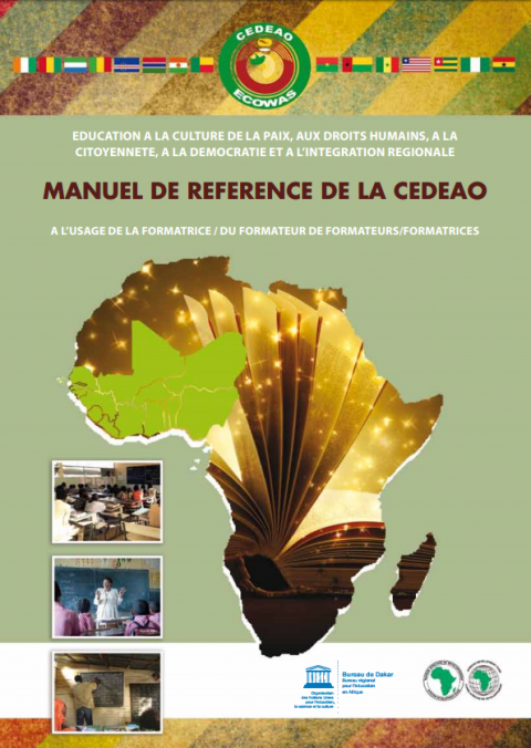 Education for a culture of peace, human rights, citizenship, democracy and regional integration: ECOWAS reference manual, for use by trainer of trainers Year of publication: 2013 Corporate author: UNESCO Dakar | Economic Community of West African States (ECOWAS) The manual comprises seven modules dealing with the Culture of Peace and Conflict Management; Human Rights; Civism and Citizenship; Democracy and Good Governance; Gender and Development; Public Health, Environment and Sustainable Development; and Regional Integration. Each module has sub-themes with introductions, reference materials, general objectives to guide the trainer and generic pedagogical tables that are flexible enough to be adapted to available teaching resources in the different ECOWAS countries. It is also suitable and adaptable to the training of teachers involved in both formal and non-formal education delivery at different levels of teaching and learning. The ultimate goal of the Manual is to build a critical mass of ECOWAS citizens equipped with competent skills, not only for cognitive and psycho-motor domains of education, but also affective skills for positive values, attitudes and behaviors that promote peace, tolerance and peaceful co-existence of community citizens.