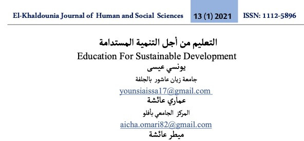 Education for Sustainable Development (vol.13 , no.1; El-Khaldounia Journal of Human and Social Sciences) Year of publication: 2021 Author: Younesi Aissa, Omari Aicha, Maitar Aicha Corporate author: Ibn Khaldoun University. Faculty of Human and Social Sciences This presentation aims to underscore the significance of education in attaining sustainable development, a topic of paramount importance globally. It emphasizes the necessity of enhancing three fundamental dimensions: economic, social, and environmental. To realize the concept of sustainable development, it is imperative to integrate it into educational curricula, ensuring that young people are adequately educated about it.