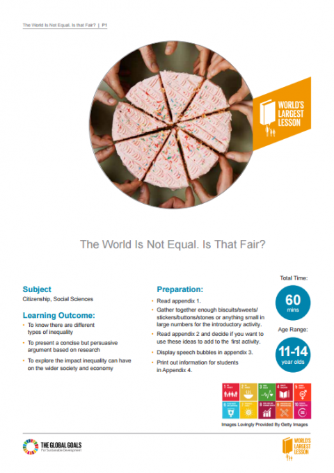 The World Is Not Equal. Is That Fair? Corporate author: United Nations Children's Fund (UNICEF) World’s Largest Lesson is a collaborative education project to support the announcement of the United Nations Global Goals for Sustainable Development. Learning outcomes of the project: • To know there are different types of inequality • To present a concise but persuasive argument based on research • To explore the impact inequality can have on the wider society and economy