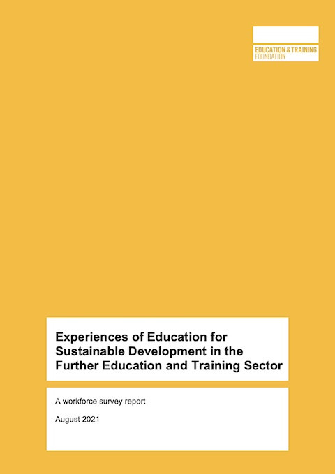 Experiences of Education for Sustainable Development in the Further Education and Training Sector Year of publication: 2021 Corporate author: Education and Training Foundation The Education and Training Foundation (ETF) recognises the vital role the further education and training (FE) sector has to play in combating climate change and achieving sustainability and social justice, both nationally and globally. Not only does our sector provide the technical and vocation skills required to help transition to a sustainable future, it also reaches millions of learners from all walks of life, spread across diverse communities.This report provides the results and an analytical narrative of findings from a survey carried out among the FE and training sector workforce about their experiences of education for sustainable development (ESD).
