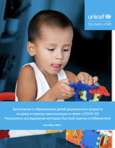 Upbringing and Education of Preschool Children at Home During the Period of Self-Isolation due to COVID-19: Results of a Rapid Assessment Study in Uzbekistan Year of publication: 2020 Author: Dipa Shankar Corporate author: UNICEF Uzbekistan The study examined the knowledge of parents and guardians about the final results of child development, appropriate and desirable child care practices and behaviors, including equality and inclusiveness; attitudes to child development services and their productivity, in particular, the quality and accessibility of available preschool services, willingness to adapt appropriate child care practices and behaviors; as well as the practice of using preschool services, interacting with children, etc.
