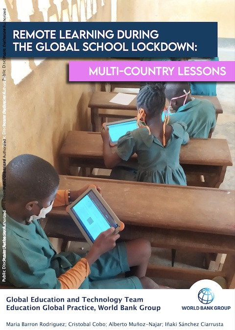 Remote Learning During the Global School Lockdown: Multi-Country Lessons Year of publication: 2020 Author: Maria Barron Rodriguez | Cristobal Cobo | Alberto Muñoz-Najar | Iñaki Sánchez Ciarrusta Corporate author: World Bank This study includes three main sections that have been organized in a chronological order within this report: the first one, “What can we learn from education emergency responses in low- and middle-income countries?” analyzes the emergency education responses to the COVID-19 pandemic of over 120 governments from April until May, 2020. The second section, “Is remote learning perceived as effective? An in-depth analysis across five countries” discusses the main national education responses deployed by Brazil, Kenya, Nigeria, Sierra Leone, and Peru, as well as the perceived effectiveness of these strategies conducted from May until August, 2020. The third section, “What works with remote and remedial strategies? an analysis across 13 countries” builds on key lessons learned during the analysis of the five multi-country experiences and presents global trends of remote learning implemented during school closures and the actions governments adopted to get ready for remedial learning, conducted from August until December 2020. The countries prioritized for the third section are IDA borrowing countries of which six are low-income countries: Afghanistan, Haiti, Malawi, Mozambique, Niger, and Rwanda; and five are lower-middle-income countries: Cambodia, Cameroon, Kenya, Nepal, and Pakistan. Additionally, two high-income countries, Estonia and Uruguay, have been included in the report. The main trends across this report are discussed below and have been grouped in five themes: (1) Adopt delivery systems with an inclusive approach; (2) Adjust the curriculum to ensure effectiveness; (3) Secure sustained teacher training and in-service support; (4) Leverage institutional capacities while ensuring sustained monitoring and evaluation; and (5) Consolidate national strategies to remediate learning losses.