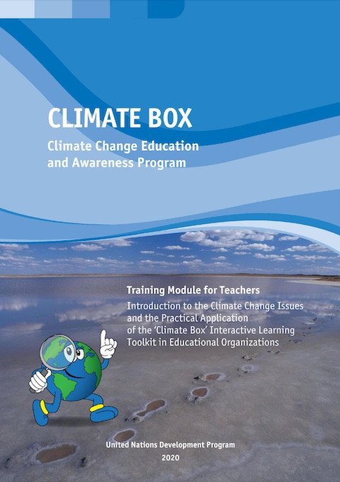 Climate Box: Climate Change Education and Awareness Program; Training Module for Teachers Year of publication: 2020 Corporate author: United Nations Development Programme (UNDP) The module contains materials for teachers, educators, tutors, educational program developers, and a wide range of people interested in climate change education. It is designed to build the capacity of teachers or education experts in climate education, as part of the formal qualification system.The objectives of the training module are:Raising climate awareness among school teachers to facilitate the introduction of climate education in primary, secondary, and high schools.Assisting teachers in the practical application of the Climate Box toolkit by facilitating the incorporation of the climate change topics into the school curriculum, extracurricular activities, and further education.Encouraging innovative pedagogical approaches to integrating climate change education into school education and raising awareness of climate change. The training module for teachers presents numerous examples on approaches to climate education, climate adaptation projects, and practices to reduce the individual carbon footprint from participating countries in the climate Box program. Its recommendations on the application of the training module consider the peculiarities of national education systems in different countries.