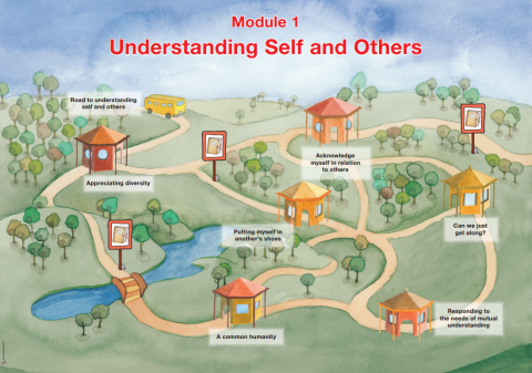 Learning to live together: poster Corporate author: United Nations Children's Fund (UNICEF) | Interfaith Council on Ethics Education for Children | Arigatou Foundation The poster is for the Learning to Live Together programme. The Learning to Live Together programme is built on two complementary learning modules, ‘Understanding Self and Others’ and ‘Transforming the World Together,’ based on four core ethical values: respect, empathy, responsibility and reconciliation.