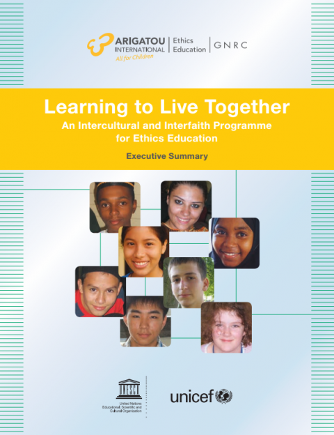 Learning to live together: an intercultural and interfaith programme for ethics education: Executive Summary Year of publication: 2015 Corporate author: United Nations Children's Fund (UNICEF) | Interfaith Council on Ethics Education for Children | Arigatou Foundation What is the Learning to Live Together? How was it developed? Where and how can it be used? In the Executive Summary you can find answers to all these questions, as well as information about outstanding projects that show the potential of the programme.