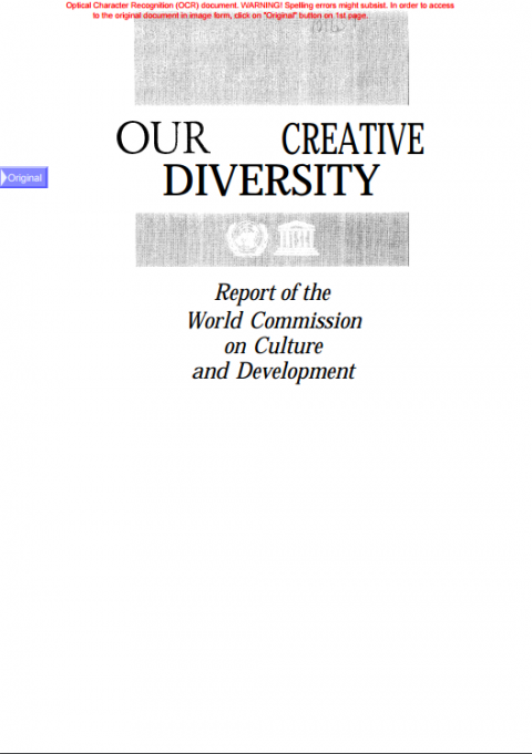 Our creative diversity: report of the world commission on culture and development; summary version Year of publication: 1996 Corporate author: World Commission on Culture and Development This report is designed to address a diversified audience across the world that ranges from community activists, field workers, artists and scholars to government officials and politicians. We want it to inform the world’s opinion leaders and to guide its policy-makers. We want it to capture the attention of the world’s intellectual and artistic communities, as well as the general public. We aim to have shown them how culture shapes all our thinking, imagining and behaviour. It is the transmission of behaviour as well as a dynamic source for change, creativity, freedom and the awakening of innovative opportunities. For groups and societies, culture is energy, inspiration and empowerment, as well as the knowledge and acknowledgment of diversity: if cultural diversity is ‘behind us, around us and before us”, as Claude L&i-Strauss put it, we must learn how to let it lead not to the clash of cultures, but to their fruitful coexistence and to intercultural harmony. Just as in the tasks of building peace and consolidating democratic values, an indivisible set of goals, so too economic and political rights cannot be realized separately from social and cultural rights. The challenge to humanity is to adopt new ways of thinking, new ways of acting, new ways of organizing itself in society, in short, new ways of living. The challenge is also to promote different paths of development, informed by a recognition of how cultural factors shape the way in which societies conceive their own futures and choose the means to attain these futures. I have for some time been concerned with the “culture of peace”. There is now considerable evidence that neglect of human development has been one of the principal causes of wars and internal armed conflicts, and that these, in turn, retard human development. With government complicity and with the intention of raising export receipts, private businesses continue to sell advanced military technology, nuclear materials and equipment for the production of bacteriological and chemical warfare. The concept of state sovereignty which still prevails today has increasingly come under scrutiny. In the area of peace-keeping, the distinction between external aggression and internal oppression is often unrealistic. The predominant threat to stability are violent conflicts within countries and not between them. There is an urgent need to strengthen international human rights law. Many of the most serious troubles come from within states – either because of ethnic strife or repressive measures by governments. Conditions that lead to tyranny and large-scale violations of human rights at home sooner or later are likely to spill over into a search for enemies abroad. The temptation of repressive states to export internal difficulties is great. Consider the Soviet Union’s invasion of Hungary and Czechoslovakia after it had used domestic oppression and the persistent refusal - for many years - of the previous South African governments to grant independence to Namibia. An ounce of prevention is better than a ton of punishment.
