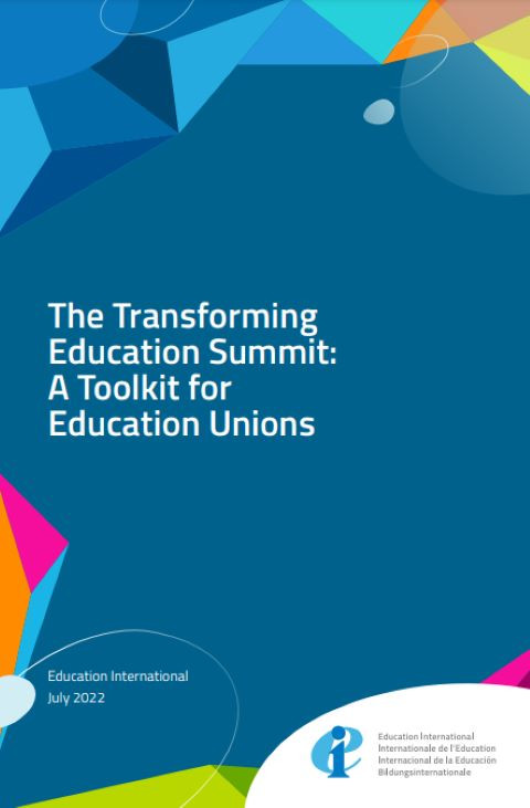 The Transforming Education Summit: A Toolkit for Education Unions Year of publication: 2022 Corporate author: Education International (EI) For the first time ever, the Heads of State of the world are meeting to discuss progress in education. Convened by the UN Secretary General, the Transforming Education Summit (TES) is taking place on 19 September 2022 in New York. It is a very important opportunity for us as education unions to make our voices heard.The Summit is a crisis response: it aims to reverse the downward trends that we currently see in education, with deepened and exacerbated inequity, and cuts to education budgets. Not only is the world off track to achieve Sustainable Development Goal 4 (SDG 4), the COVID-19 pandemic has wiped out 20 years of education gains. This is why the UN Secretary-General is calling for urgent action.The Summit is the biggest international education event since the adoption of SDG4 and a significant political opportunity for all EI member organisations. There are multiple ways that education unions can engage in the lead up to the Summit.This toolkit includes EI’s key policy messages for the Summit and aims to support EI member organisations in their advocacy efforts to ensure the Summit has concrete, tangible outcomes that advance teachers’ status and rights and the fulfilment of the right to education for all.