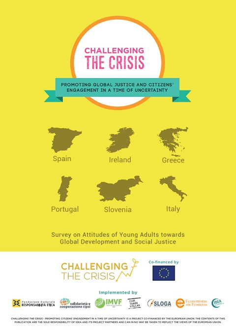 Challenging the Crisis: Promoting Global Justice and Citizens’ Engagement in a Time of Uncertainty; Survey on Attitudes of Young Adults Towards Global Development and Social Justice Year of publication: 2015 Corporate author: Irish Development Education Association (IDEA) This report outlines the views of young people, aged 15-34 from Portugal, Ireland, Italy, Greece, Spain and Slovenia, on international development, and their understanding of related concepts and issues. The aim of the research was to assess whether global solidarity and development aid are priorities for European youth in a time of economic and political crisis and high unemployment.