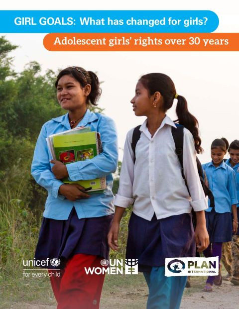 Girl Goals: What has Changed for Girls? Adolescent Girls’ Rights over 30 Years Year of publication: 2025 Corporate author: United Nations Children's Fund (UNICEF) | United Nations Entity for Gender Equality and the Empowerment of Women (UN Women) | Plan International This report makes three key recommendations on action we can take now to advance adolescent girls’ rights at scale, in ways that account for fiscally constrained contexts and multiple competing priorities: 1. Ensure tangible and actionable support for adolescent girls’ voices, advocacy and action. The current generation of girls are raising their voices to be heard and are already at the forefront of making change around the world. With the right support, resources and seats at the table, adolescent girls can help transform the world for the better, shaping better policy outcomes for themselves and everyone. This is not about girls’ voices above all others, or endless consultation, but about specific, meaningful actions that ensure girls get the support they need and are heard on policy issues that matter to them. 2. Establish and track explicit targets for change for adolescent girls, who are too often invisible and sidelined Setting explicit targets to monitor outcomes for adolescent girls is key to making progress. Context-specific prioritization will be necessary, but there are some issues that stand out globally. Gaps in progress (such as child marriage gains accruing disproportionately to wealthier households) demonstrate the need forprogrammes that address poverty and economic realities alongside harmful social norms. The disproportionate number of adolescent girls not in education, employment or training, not entering the labour market as young women, and left behind when it comes to digital skills, is a threat to the gains made for girls and to economic growth that will benefit everyone. Stagnation on issues like underweight also stand out. Country- specific priorities supported by data- driven accountability mechanisms and investments are needed to translate policy commitments into change on the ground. 3. Resource and deliver smartly to unlock the social and economic dividend Governments and partners should invest in solutions proven to change outcomes across multiple SDGs at scale – for example, investing in education and skills, cash transfers and economic empowerment programmes designed to support girls. Existing systems, from maternal health care to school curricula, should be adapted to meet girls’ needs rather than creating small- scale, separate projects. Streamlined, evidence-based ‘add-ons’ – such as adding parenting support to existing maternal health-care programmes – can be cost effective and accelerate outcomes if well designed. Change is possible, and this report shows that great gains have been made. Smart investments now can transform the world for girls, families, communities and national economies. It is time to act.