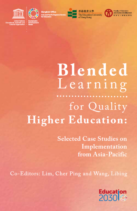 Blended learning for quality higher education: selected case studies on implementation from Asia-Pacific Year of publication: 2016 Author: Lim, Cher Ping | Wang Libing Corporate author: UNESCO Bangkok Together with The Education University of Hong Kong, UNESCO Bangkok gathered experts from higher education institutions in the Asia-Pacific region to explore the potential of blended learning, including its impact on the role of teachers, the relationship between teachers and students, and the nature of educational institutions themselves. Issues about the quality of education are at the heart of the Sustainable Development Goals, which were adopted during the United Nations Sustainable Development Summit in September 2015.