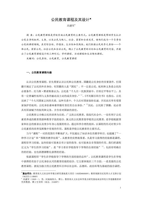 Curriculum of Citizenship Education and its Design Year of publication: 2015 Author: Feng Jianjun Corporate author: Northeast Normal University This paper discusses curriculum for citizenship education, including its nature, its content, its structure etc.