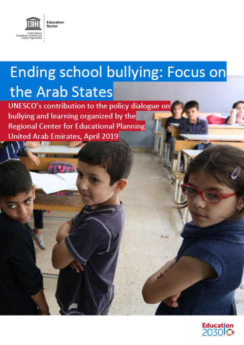 Ending school bullying: Focus on the Arab States and North Africa UNESCO’s contribution to the policy dialogue on bullying and learning organized by the Regional Center for Educational Planning United Arab Emirates Year of publication: 2019 Corporate author: UNESCO Bullying is a form of school violence. According to an agreed international definition, bullying is characterised by aggressive behaviour that involves unwanted, negative actions and an imbalance of power or strength between the perpetrator or perpetrators and the victim. Unlike isolated incidents of school violence, bullying is also characterised by repetition over time. The number of repetitions may vary and, for example, major surveys that collect data on bullying measure the frequency of bullying in different ways. The international Sustainable Development Goal Thematic Indicator 4.a.2 that measures the ‘percentage of students who experienced bullying during the past 12 months, by sex’, which was adopted in 2018, defines that the frequency of aggressions should be at least once or twice a month or more for a student to be considered a victim of bullying. It is important to note that here is no standard definition of bullying across the six international surveys that collect data on the prevalence of bullying. Some of them do not even provide a definition. These surveys are the following:Two international surveys that measure the health behaviours of students as well as protective factors including school climate: the WHO Global School-based Student Health Survey (GSHS) and the Health Behaviours in School-aged Child survey (HBSC) conducted by the HBSC Consortium.Four international surveys that focus mostly on the measurement of learning outcomes of students but also ask questions on the school climate including bullying: the Regional Comparative and Explanatory Study in Latin America (Estudio Regional Comparativo y Explicativo, ERCE in Spanish); theProgress in International Reading Literacy Study (PIRLS); the Programme for International Students Assessment (PISA); and the Trends in Mathematics and Science Study (TIMSS).