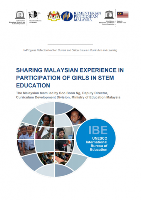 Sharing Malaysian experience in participation of girls in STEM education Year of publication: 2016 Corporate author: UNESCO International Bureau of Education (IBE) The Malaysia government has placed STEM as a focus in developing the country towards achieving the status of a developed nation. The government acknowledges the role of women as equal partners in nation building. Thus, various policies ranging from economy, education, women’s welfare and human resources have been formulated through the years. These policies have resulted in among others, the increase in women researchers from 35.8% in 2004 to 49.9% in 2012 as well as more women’s participation in selected STEM courses at the tertiary level. A total of 84 girls’ day schools with 6 of them as residential STEM Girls’ schools have been built since 1939. There are many female role models in STEM for the girls to emulate. This has been made possible by the successful implementation of the various policies related to women in STEM as well as innovative measures in facing the continuing challenges in STEM education.
