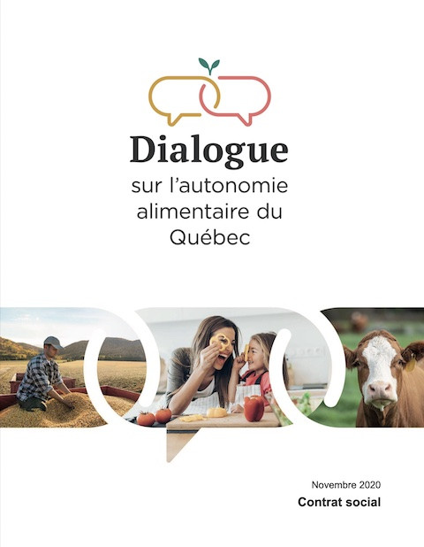 Dialogue on Quebec Food Autonomy Year of publication: 2020 Corporate author: Institut du Nouveau Monde (INM) Food autonomy is more than ever a crucial subject for Quebec society. The COVID-19 pandemic has revealed the fragility of our food system and has created a new opportunity to talk about this strategic issue. Several players are saying it: it It is time to bring agricultural producers closer to citizens, and to create new forms of solidarity between them.To do this, the Union des producteurs agricoles (UPA) wishes to set up a real opportunity for dialogue between the two ends of the production chain food, that is to say producers and citizens.The Dialogue on food autonomy is an opportunity for citizens to participate in the development of a social contract on issues related to food autonomy and to facilitate a dialogue between them and producers, who are an essential link. of this strategic issue. It provides opportunities for open and constructive exchanges between agricultural producers and citizens, first separately and then in a common group. It will then be offered to all of Quebec.