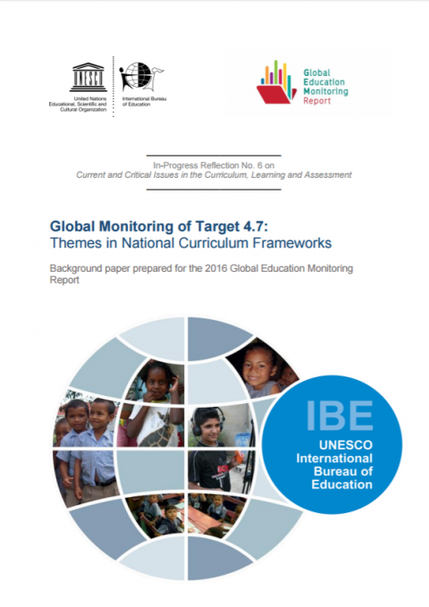 Global Monitoring of Target 4.7: Themes in National Curriculum Frameworks; Background Paper Prepared for the 2016 Global Education Monitoring Report Year of publication: 2016 Corporate author: UNESCO International Bureau of Education (IBE) This study is an initial attempt to monitor ESD and GCED content in curricula globally. The goal here is to analyse national curriculum documents to reveal if, how, and to what extent ESD and GCED content is present across the globe. For this purpose, the research team developed a coding scheme based on key ESD and GCED knowledge, skills, behaviours and pedagogies that was used in evaluating the various national curriculum documents for evidence of ESD and GCED content. In this paper, we present the study in the following order. Further explanation of ESD and GCED, and a discussion of issues relating to their implementation and monitoring will come first. Then we will review similar studies that have also attempted to monitor GCED and ESD through content analysis. The study’s methods and findings will then be presented, followed by a discussion of the challenges addressed in developing a coding system to monitor curricula effectively. Finally, we share a series of recommendations that will focus on ways for moving forward in monitoring GCED and ESD effectively, both at a curricular level and beyond.