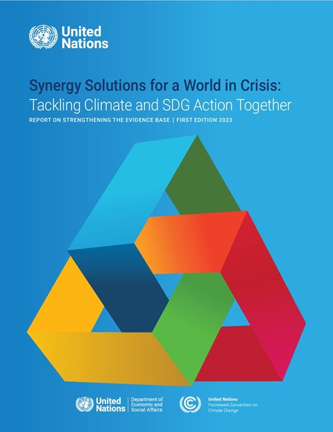 Synergy Solutions for a World in Crisis: Tackling Climate and SDG Action Together Year of publication: 2023 Corporate author: UNDESA | UNFCCC In May 2023 UNDESA and UNFCCC Secretariat co-convened the Expert Group on Climate and SDG Synergy. The Group consists of 14 renowned experts from diverse thematic and geographic backgrounds who were given the task of developing the First Global Report on Climate and SDG Synergies. This report demonstrates that aggressively acting on climate and development in an integrated and synergistic way is an important opportunity to achieve the course correction the UN Secretary- General has called for. It highlights some of the challenges but also the opportunities if the international community is seriously committed to enhancing these synergies and thereby addressing these challenges. The report is designed to provide a broad overview of available data and evidence, insights from experts on the frontlines, and recommendations for enhancing synergistic action across the 2030 Agenda and the SDGs. This first edition will form the basis for future iterations, which will entail a wider scope of sectors, and thematic areas and deep dives on specific issues pertaining to strengthening and operationalizing synergic climate and SDG actions at all levels.