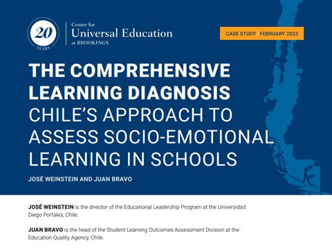 The Comprehensive Learning Diagnosis: Chile’s approach to assess socio-emotional learning in schools Year of publication: 2023 Author: José Weinstein | Juan Bravo Corporate author: Center for Universal Education at Brookings Education in Chile has important challenges of quality, equity, and social integration. For decades, policies tried to respond to these concerns with a high-stakes accountability institutional framework, which has not had success. The underlying vision of educational quality was limited. The assessment system in place privileged cognitive and academic dimensions of educational results. Socio-emotional learning had been neglected or considered secondary, without an infrastructure of assessment tools that allowed teachers and principals to diagnosis students’ situations and monitor their progress. The COVID-19 crisis was an opportunity for change: Students’ socioemotional needs were a main concern for schools and society, and the regular accountability system based on standardized tests was interrupted. Subsequently, the Comprehensive Learning Diagnosis (DIA) was launched by the Education Quality Agency. The DIA is a voluntary assessment tool made available to all Chilean schools. The DIA promotes the comprehensive development of students, providing timely information and guidance to internally monitor students’ learning in the academic and socio-emotional domains at several points during the school year. Specifically, with respect to socio-emotional learning, three areas were considered: personal, community, and citizenship. In each of these areas, a set of socioemotional skills were defined, operationalized, and became possible to monitor by school communities. The DIA also collects students’ opinions of school management practices regarding socio-emotional skills. The DIA has received a wide acceptance in school communities. Despite being voluntary, an ample majority of schools decided to participate. The information collected from the DIA allows for practical use by principals and teachers. Moreover, the DIA provides the opportunity for students to inform school management. The new Chilean government has decided to strengthen DIA as an important component in a four-year national plan for reactivating academic and socio-emotional learning in schools. The previous high-stakes accountability system, which involved external assessments, has been suspended and is under discussion. The DIA experience has shown that critical social and educational situations can provide fertile ground to motivate deep and rapid transformation, if an educational actor (in this case the Education Quality Agency) is capable of enacting a pertinent, timely, and practical response to school needs. The DIA is not only an example of productive uses of students´ assessment by schools, but also a demonstration that it is possible to build an institutional arrangement among local, intermediate, and national levels of school systems, where a vertical hierarchy is changed by a collaborative relationship based on local agency, mutual trust, and differentiated technical contributions.
