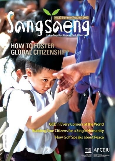 Developing global citizens with a global perspective (SangSaeng no. 37 summer autumn 2013) Year of publication: 2013 Author: Misato Yamaguchi Corporate author: APCEIU SangSaeng No. 37- How to Foster Global Citizenship? has been published. In order to help our readers better grasp the concept of global citizenship and provide useful information and new ideas, this issue deals with various aspects of global citizenship education.3 Director’s Message4 Special ColumnBuilding True Citizens for a Single Humanity8 Focus: How to Foster Global Citizenship?8 Eliminating World Challenges through Global Citizenship Education 13 Developing Global Citizens with a Global Perspective18 Living in a New World Starts with Education23 GCE in Every Corners of the World28 Best Practices28 Hands-on Hand Print for Environmental Sustainability32 Bhutan Teachers Learn New Models of Education35 Comic Relief: Song of the City36 Special ReportPaving the Way Together for Global Citizenship Education40 InterviewBuilding a Global Community out of the Ashes of Poverty42 LetterCapturing Moments of Living in Harmony44 Peace in My MemoryHow Golf Speaks about Peace47 Understanding the Asia-Pacific RegionDiscovering Locks beyond the Function of Opening and Closing50 APCEIU in Action