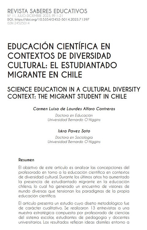 Science Education in a Cultural Diversity Context: The Migrant Student in Chile (Revista Saberes Educativos; July-Decembe, No.11) Year of publication: 2023 Author: Carmen Luisa Alfaro Contreras | Iskra Pavez Soto The aim of this article is to analyze teachers' conceptions of science education in contexts of cultural diversity. In recent years, the presence of migrant students in Chilean education has increased, which has generated a meeting of diverse world views that stress the paradigms of scientific education itself. The article presents a study whose methodological design was of a qualitative nature. 13 interviews were conducted with a strategic sample made up of science teachers from the school system, pedagogy students, and university professors. The results reflect dissimilar ideas about the relationship between science and culture, generating, on the one hand, a kind of invisibility or denial of diversity and, on the other, a recognition of a multiplicity of ways of building knowledge, approaching an intercultural view of science. Stereotyped ideas about the student body and the lack of training to deal with cultural diversity are recognized. The main difficulties are associated with the characteristics of the school system and the hegemonic and monocultural nature of the curriculum. It concludes with recommendations on the need for a postcolonial scientific education and to democratize knowledge, with a focus on student learning that allows the development of critical individuals.